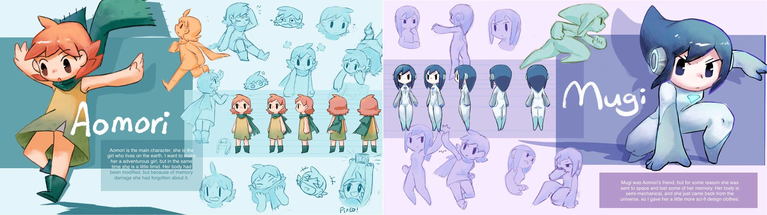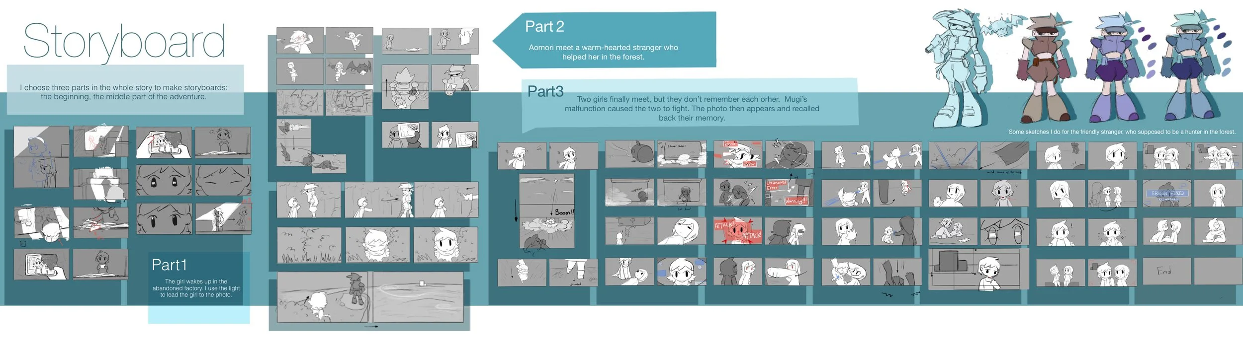 It is a story about a girl-Aomori, who embarks on a journey to recover the memories of her friends. The only clue she has is a damaged photo. At the end of the story, she finds her friend Mugi. who is a cyborg. At first, they don't recognize each other and have a conflict. But finally, they recognized each other because of the photo. The photo is the thread that runs through the whole story.